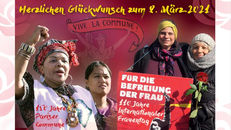Zusammen mit dem neuen Rote Fahne Magazin, das Argumente für die Perspektive der Befreiung der Frau entwickelt, hat die MLPD zum bevorstehenden Internationalen Frauentag eine schöne Postkarte herausgegeben, bestens geeignet für den Einsatz am 8. März und darüber hinaus.