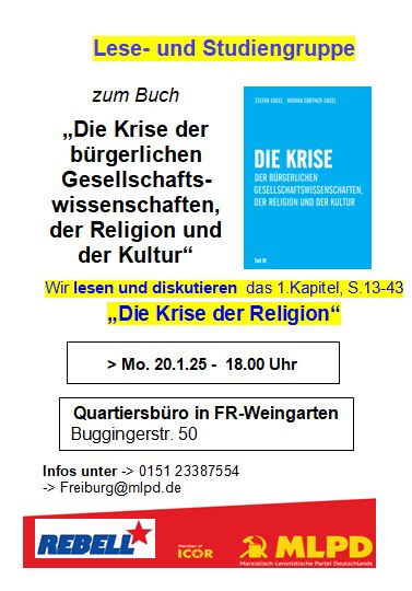 Suchergebnisse 10385 Inhalte gefunden Trefferliste sortieren Relevanz Datum (neueste zuerst) alphabetisch Wahlkreis Kalender — 20.01.2025 wahlprogramm_freisteller.png — 15.01.2025 Bericht von der LLL Demonstration 2025 — 18.01.2025 Vereinen wir uns gegen den Krieg und die Armut! — 17.01.2025 Lutte contre le danger imminent d'une conflagration au Proche-Orient. Quelle est la perspective de la lutte de libération palestinienne ? — 16.01.2025 Lutte contre le danger imminent d'une conflagration au Proche-Orient. Quelle est la perspective de la lutte de libération palestinienne ? — 16.01.2025 2025 — 16.01.2025 Lese- und Studiengruppe — 15.01.2025 Stud_RW39_20.1.25.JPG — 15.01.2025 Lese- und Studiengruppe — 15.01.2025 10 frühere Inhalte 1 ... 74 75 76 77 78 79 80 ... 1039 Die nächsten 10 Inhalte
