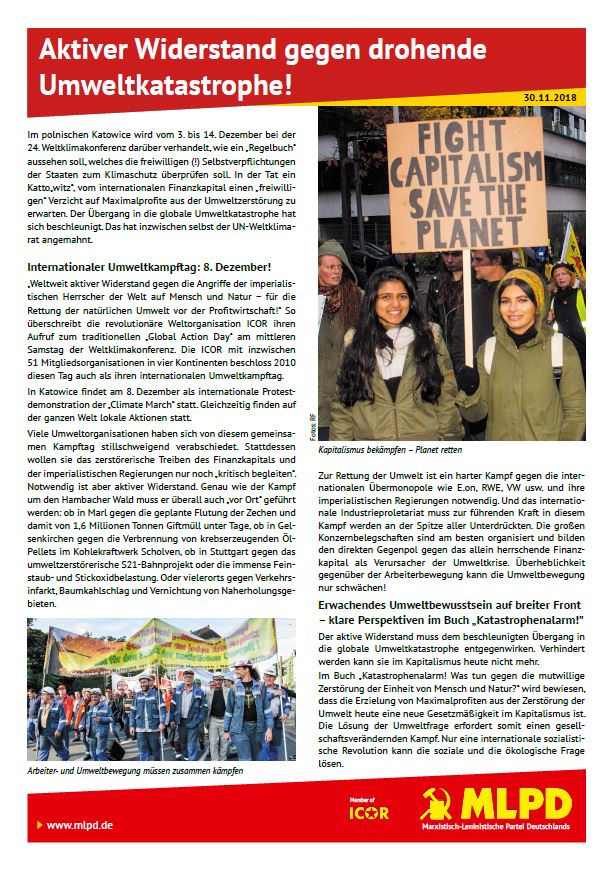 Vordergrundbild z.B. ein Screenshot des Flugblattes Hintergrundbild z.B. ein Foto 319 * 177 Pixel breit Text kurzer Anreißer z.B. "Erklärung des Zentralkomitees der MLPD: Aktiver Widerstand gegen imperialistische Kriegsvorbereitung!" Aktiver Widerstand gegen drohende Umweltkatastrophe Buttontext z.B. "Flugblatt lesen" Flugblatt lesen Buttonlink z.B. "2018/kw14/dieses-flugblatt-in-pdf-format-in-farbe" 2018/kw48/aktiver-widerstand-gegen-drohende-umweltkatastrophe.pdf Inhalte Dieser Ordner hat zur Zeit keinen Inhalt.