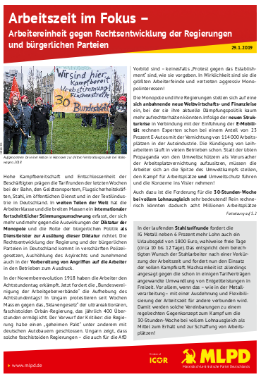 Vordergrundbild z.B. ein Screenshot des Flugblattes Hintergrundbild z.B. ein Foto 319 * 177 Pixel breit Text kurzer Anreißer z.B. "Erklärung des Zentralkomitees der MLPD: Aktiver Widerstand gegen imperialistische Kriegsvorbereitung!" Arbeitszeit im Fokus - Arbeitereinheit gegen Rechtsentwicklung der Regierung und bürgerliche Parteien Buttontext z.B. "Flugblatt lesen" Fugblatt lesen Buttonlink z.B. "2018/kw14/dieses-flugblatt-in-pdf-format-in-farbe" https://www.rf-news.de/2019/kw05/190128-flugblatt-arbeitszeit-im-fokus_web.pdf Inhalte Dieser Ordner hat zur Zeit keinen Inhalt.