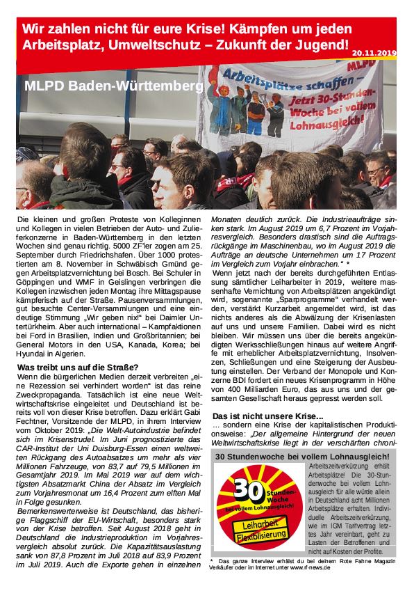 Vordergrundbild z.B. ein Screenshot des Flugblattes Hintergrundbild z.B. ein Foto 319 * 177 Pixel breit Text kurzer Anreißer z.B. "Erklärung des Zentralkomitees der MLPD: Aktiver Widerstand gegen imperialistische Kriegsvorbereitung!" Wir zahlen nicht für eure Krise! Buttontext z.B. "Flugblatt lesen" Flugblatt lesen Buttonlink z.B. "2018/kw14/dieses-flugblatt-in-pdf-format-in-farbe" 2019/11/wir-zahlen-nicht-fuer-eure-krise.pdf Inhalte Dieser Ordner hat zur Zeit keinen Inhalt.