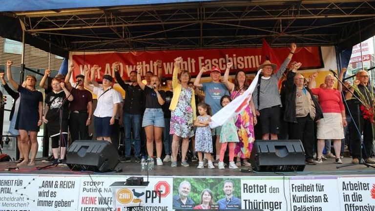 MLPD yeni seçimlere iyi hazırlıklıdır – resimde: Enternasyonalist Liste/MLPD‘nin 31 Ağustos 2024 tarihinde Erfurt şehrinde gerçekleştirdiği (Thüringen eyaleti) seçim kampanyasının finali (rf-foto)